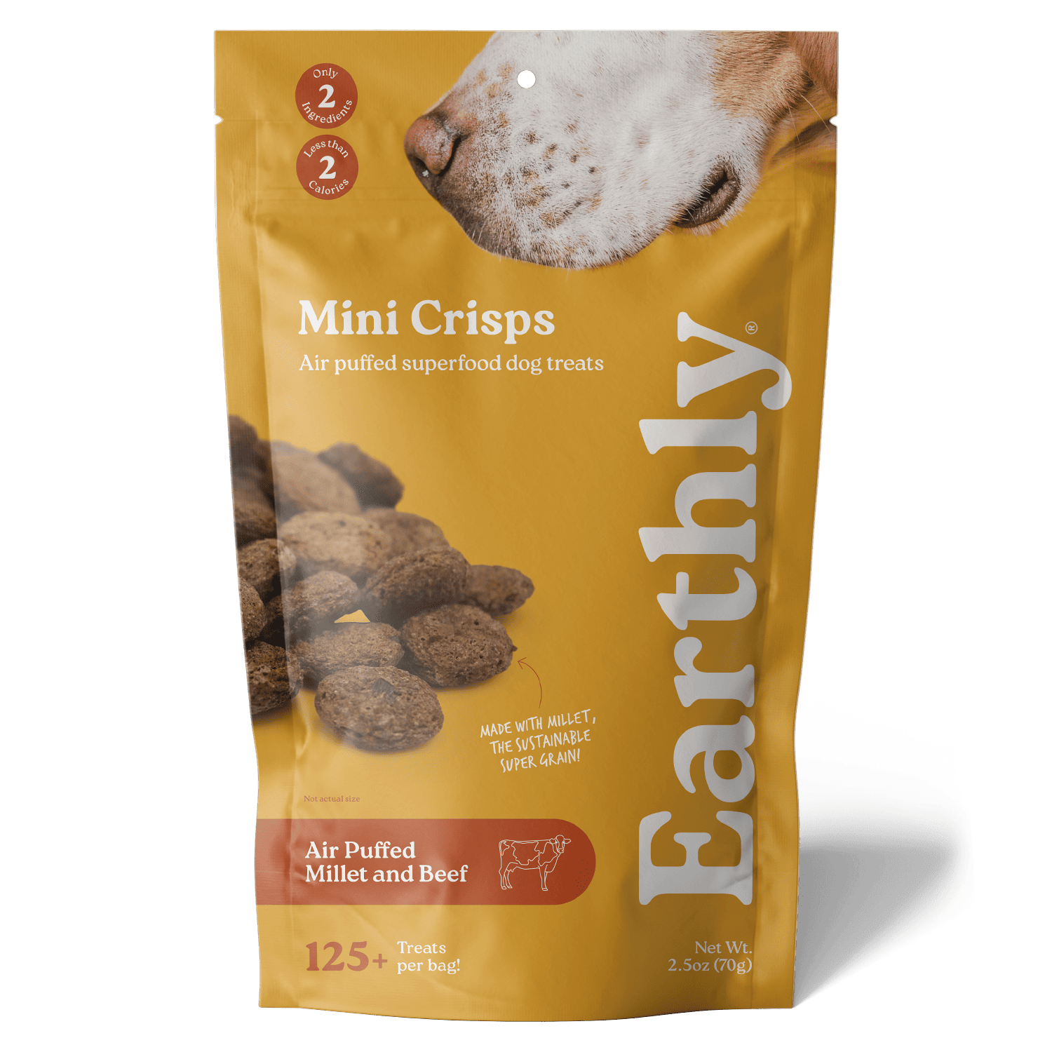 The light texture comes from air puffed millet, the superfood grain that's low glycemic, plant friendly and nutrient rich; so you can feel good about rewarding your pup all day long!